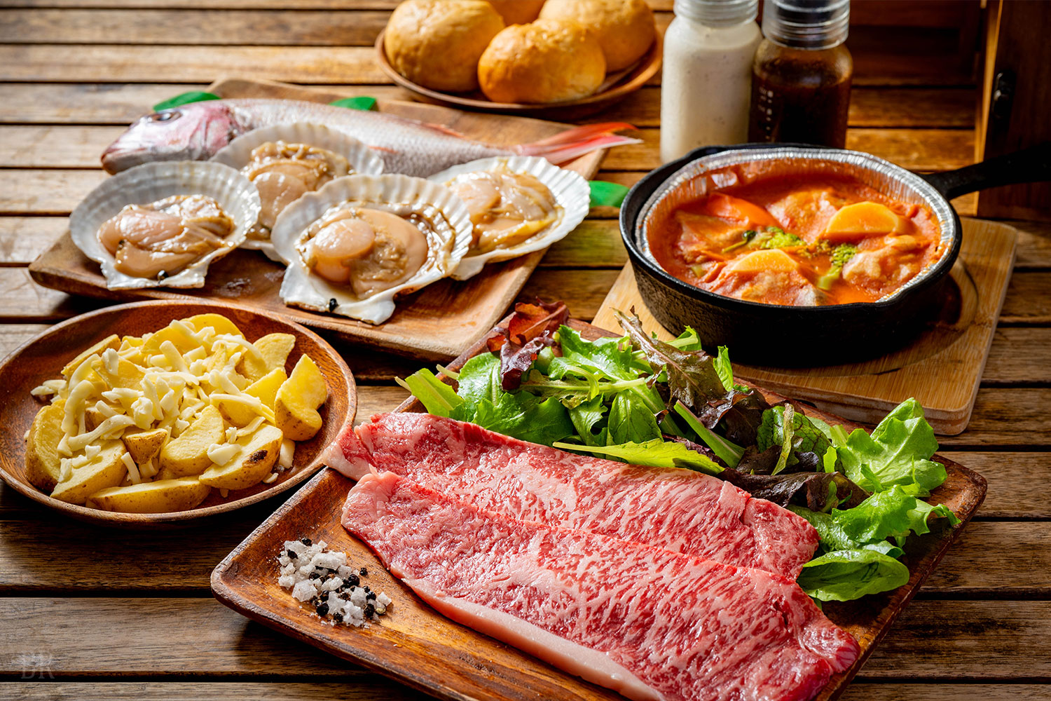 地産地消にこだわったグランピングBBQメニューは、瀬戸内産のブランド牛「瀬戸内牛」や旬の物を楽しめる新鮮な海の幸、